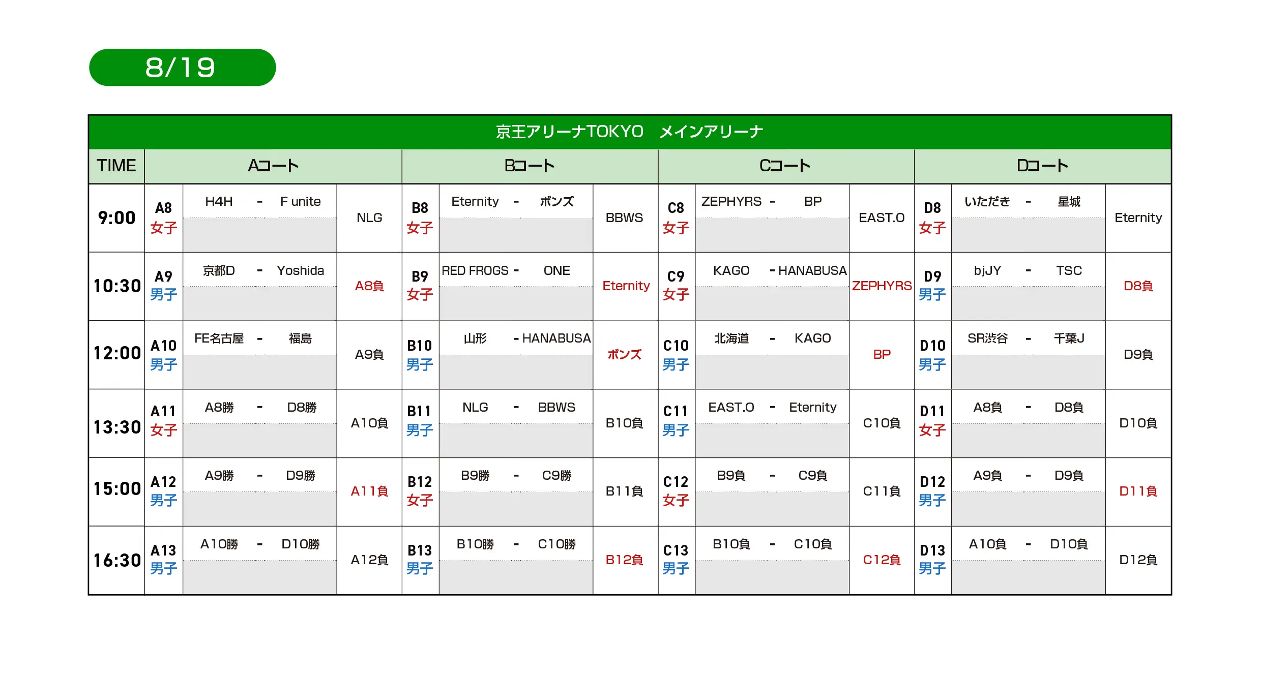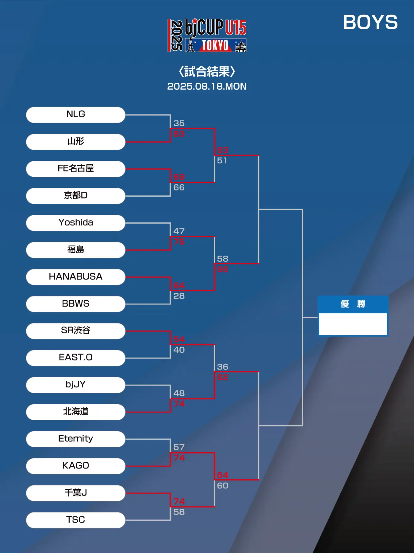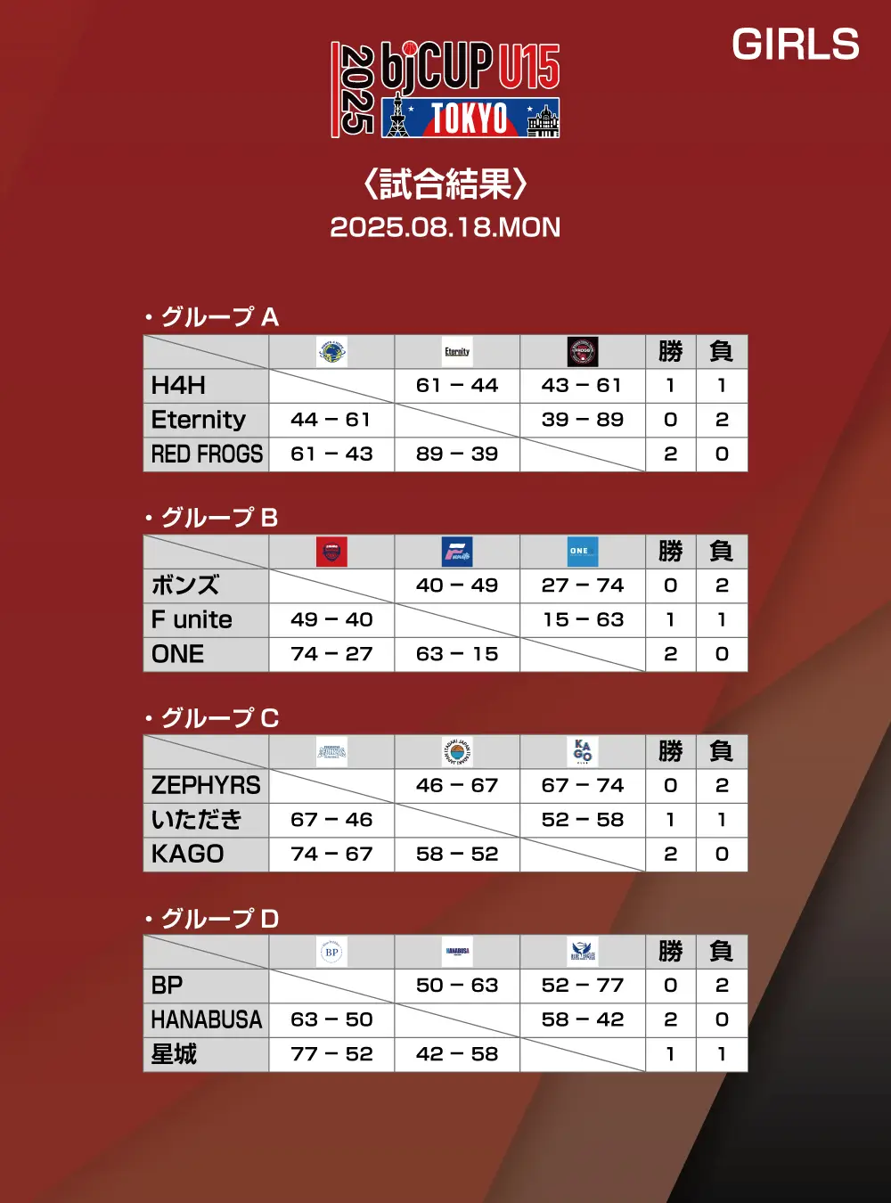 「2025 bjカップ U15 in TOKYO」DAY1(8/18)試合結果