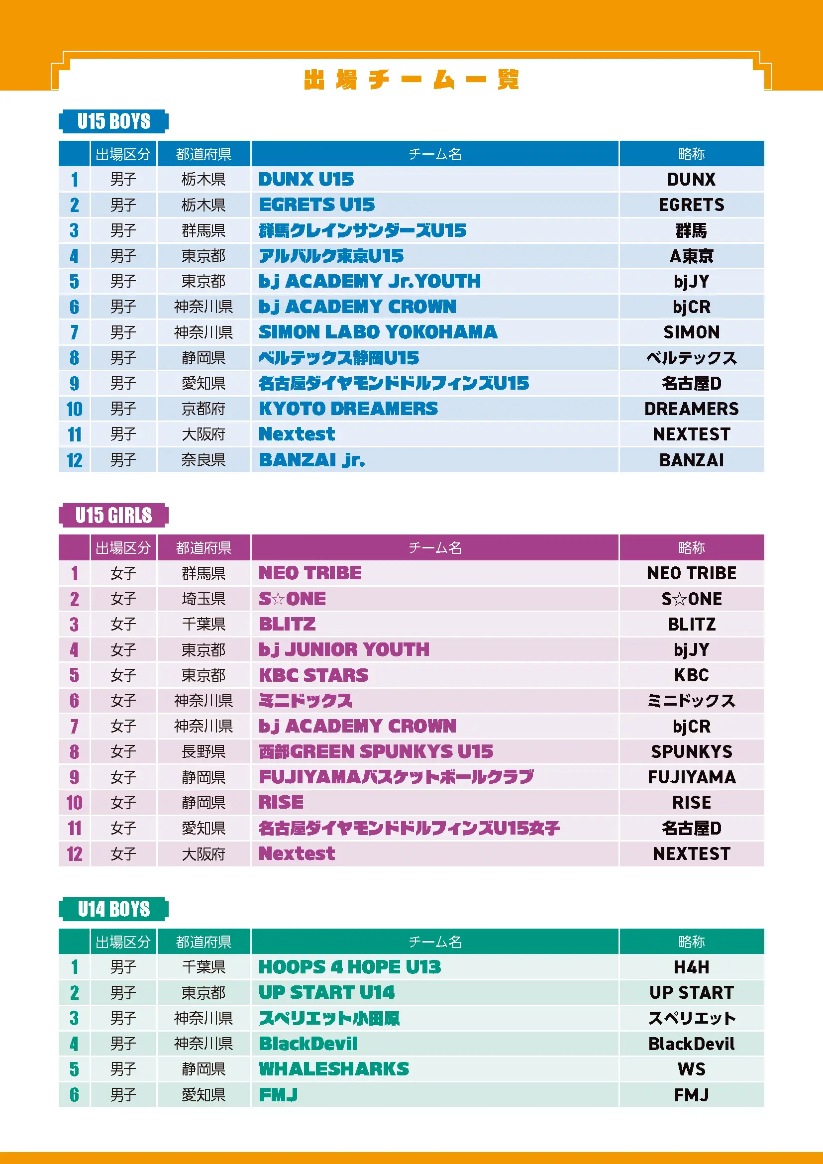 <U15>男子12チーム・女子12チーム 合計24チーム